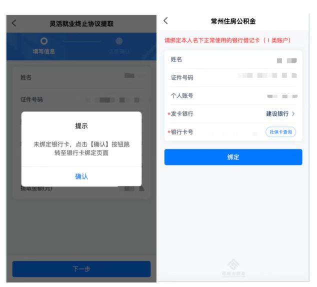 步驟2:銀行卡綁定成功后,確認基本信息,點擊“下一步”,確認綁定銀行、銀行卡號、提取金額后,點擊“提交”按鈕,業(yè)務辦理成功。