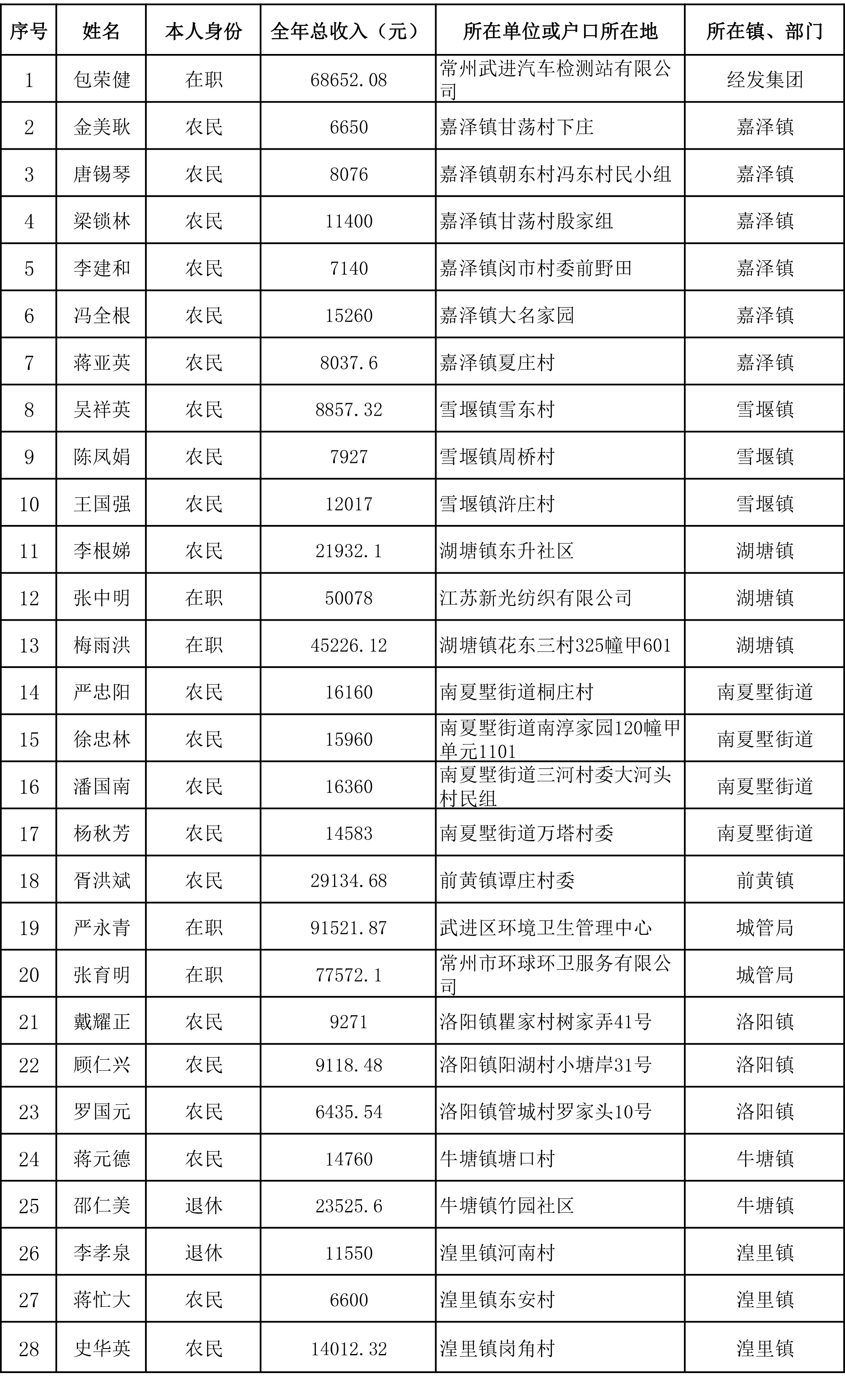 根據(jù)《關于改善和提高區(qū)以上勞動模范待遇的實施意見》(武政辦發(fā)〔2010〕153號)和《貫徹〈關于改善和提高區(qū)以上勞動模范待遇的實施意見〉的操作辦法》(武工發(fā)〔2010〕47號)精神,我區(qū)勞動模范包榮健等28人申報了低收入勞模生活困難補助,現(xiàn)將勞模的2024年度個人收入情況予以公示,公示期為2025年8月11日至8月15日,如有異議,請向常州市武進區(qū)總工會反映。電話:86312561。