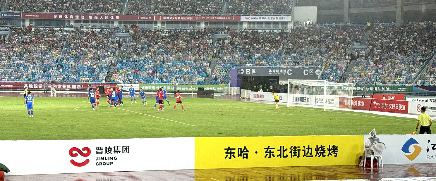 6月21日晚,常州奧體中心大雨滂沱。“蘇超”第五輪常州主場迎戰(zhàn)南京的激戰(zhàn)中,一塊亮黃色的“東哈·東北街邊燒烤”廣告牌在江蘇銀行等一眾知名品牌中顯得格外醒目——它由湖塘紡織城內(nèi)一家街邊燒烤店贊助。“這家燒烤店是和喜力、京東并列的‘世界品牌’了!”“太接地氣了,過兩天一定要去這家店試試。”網(wǎng)友紛紛熱議。