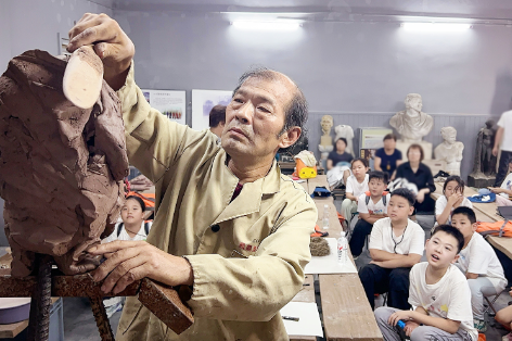 孩子們在龍鳳谷景區(qū)上雕塑體驗(yàn)課