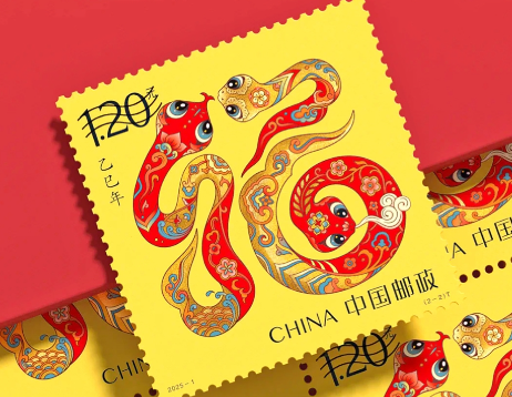 《乙巳年》特種郵票以敦煌壁畫和傳統(tǒng)民俗為靈感來源,將蛇的形象與吉祥寓意巧妙結(jié)合。第一枚圖名為“蛇呈豐稔”,第二枚圖名為“福納百祥”,兩枚郵票不僅是對生肖之美的再次詮釋,更是對盛世安康、福澤四季的深情祝福。
