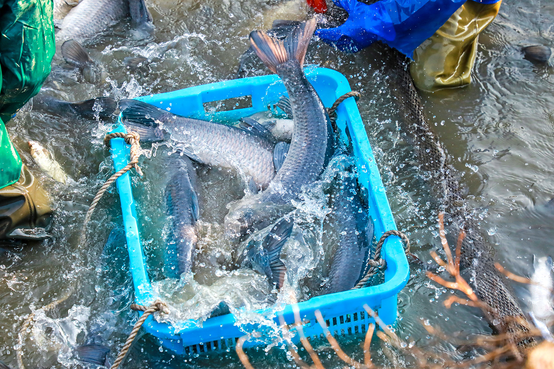 “走!起魚啦!”1月19日早上8:30,洛陽(yáng)鎮(zhèn)岑村村的魚塘邊分外熱鬧,專業(yè)捕魚人員在魚塘里將魚網(wǎng)一點(diǎn)點(diǎn)收攏,肥美的青魚就躍出水面。這邊的村民們將一筐筐鮮活的青魚運(yùn)到岸上,另一邊,村民們則忙著將一條條青魚裝到印有“岑村”商標(biāo)的包裝盒中,等著26個(gè)村民小組的小組長(zhǎng)分批次來(lái)領(lǐng)魚。