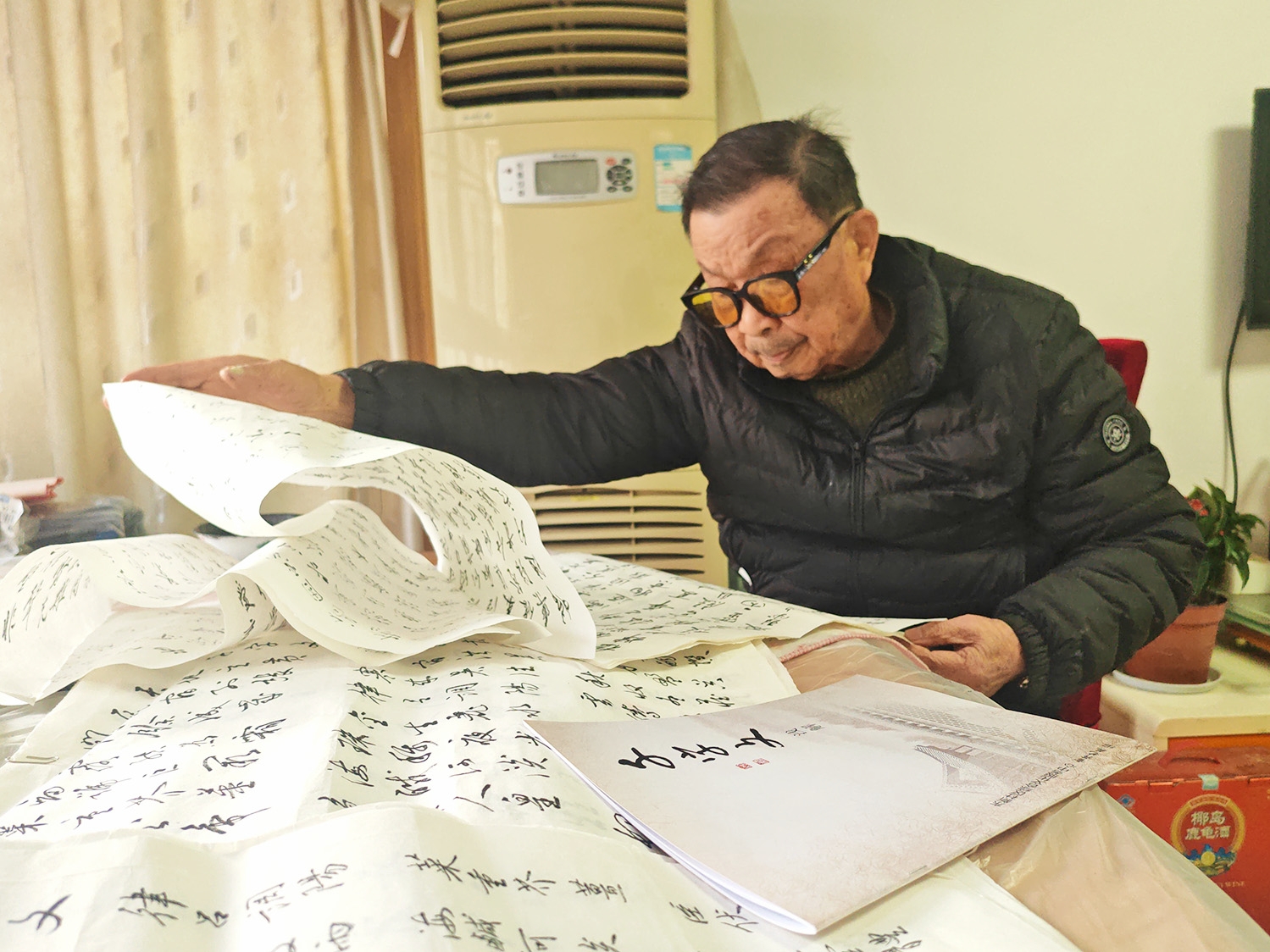 走進(jìn)秦雪芹家,墨香撲面而來。今年93歲高齡的他,從事書法創(chuàng)作多年,此前,他曾將自己的多幅書法作品捐贈(zèng)給家鄉(xiāng)湖塘鎮(zhèn)東新社區(qū)。得益于此,東新社區(qū)綜合性文化服務(wù)中心“雪芹藝苑”于2023年5月順利開館,館內(nèi)陳列著秦雪芹的書畫作品及眾多名家名作,填補(bǔ)了基層社區(qū)綜合性文化服務(wù)中心的館藏空白。