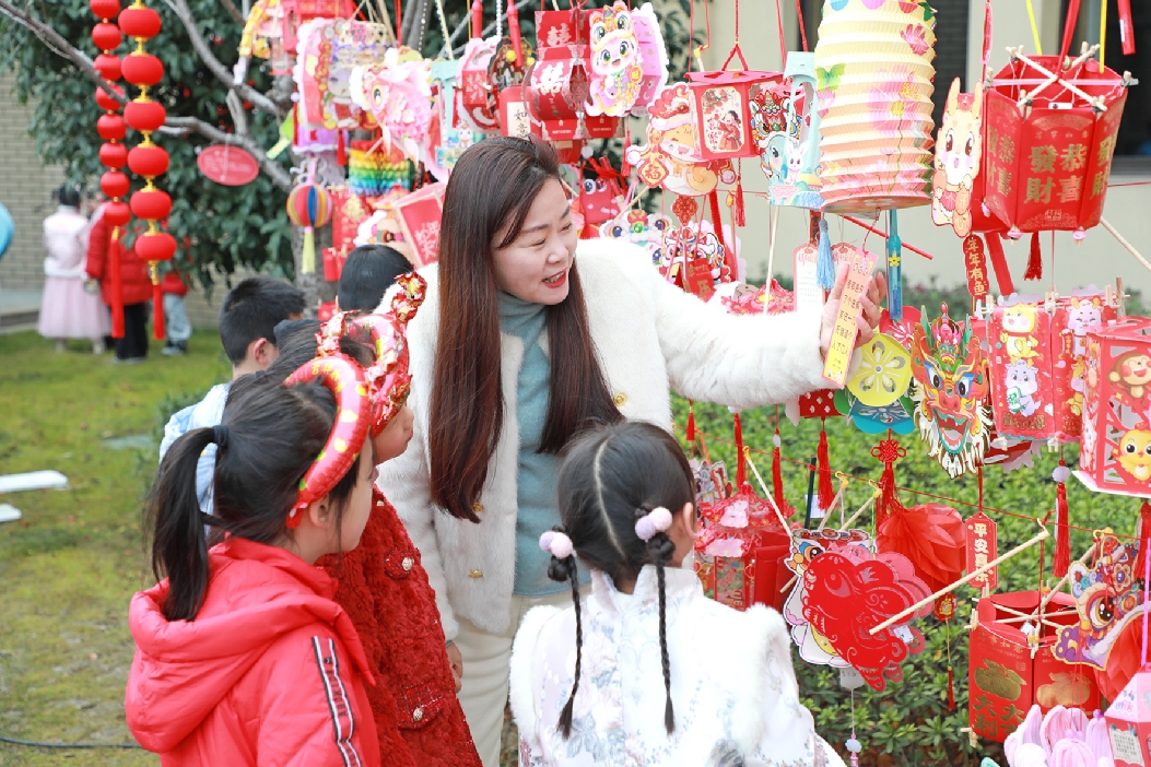 恰逢元宵佳節(jié),武進(jìn)區(qū)學(xué)府小學(xué)布置了猜燈謎區(qū)域,一派熱鬧非凡的景象。