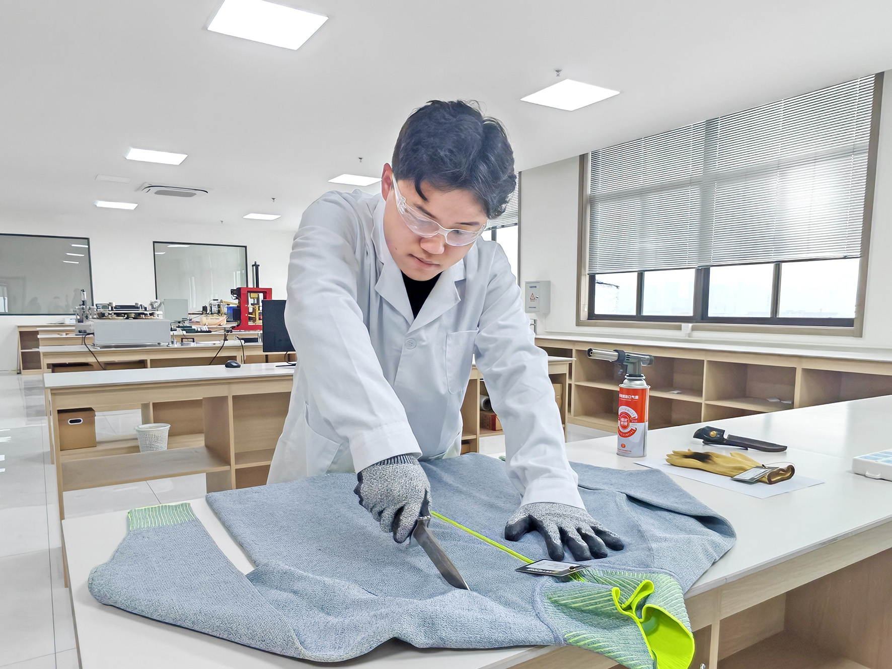 在江蘇科旭紡織科技有限公司實(shí)驗(yàn)室內(nèi),一道寒光劃過灰綠色面料,伴隨金屬摩擦的銳響,工作人員手持利刃對(duì)防割服進(jìn)行上百次切割測(cè)試——刀刃過處僅僅留下幾道淺痕。據(jù)悉,這件神奇的防割服,曾獲工信部2023、2024年度中國(guó)十大類紡織創(chuàng)新產(chǎn)品稱號(hào),正詮釋著傳統(tǒng)紡織業(yè)的硬核蛻變。