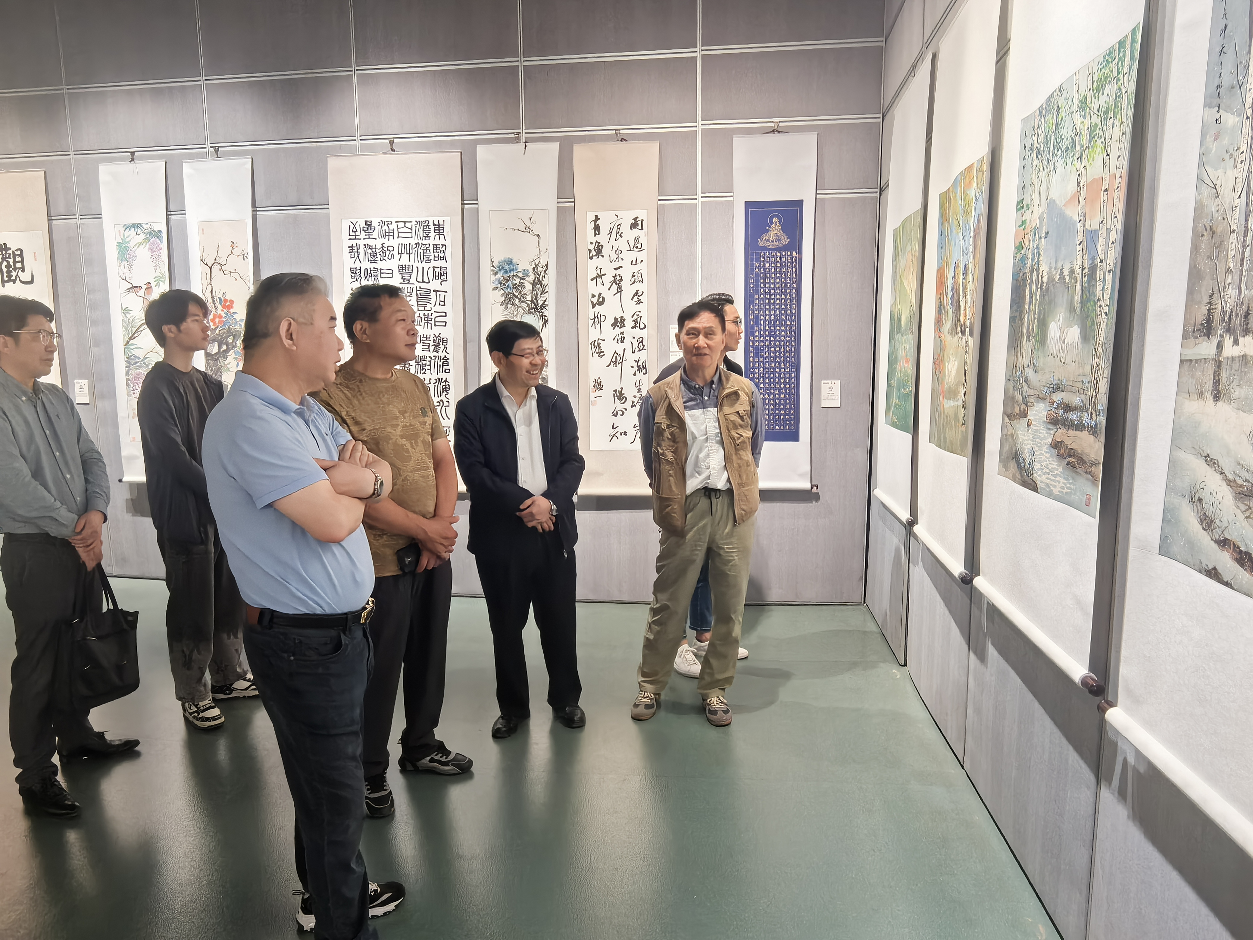 4月22日上午,慈善義賣作品展第二個開放日,來自常州本地和宜興的愛心藝術(shù)家紛至沓來,走進(jìn)武進(jìn)博物館聽取武進(jìn)區(qū)同心助殘驛站理事長陳凱對展覽籌備和作品展陳工作的介紹,對驛站去年以來豐富多彩的助殘公益活動予以肯定。步入展廳,知名鑒賞家洪全慶向愛心藝術(shù)家介紹各件作品的藝術(shù)特征和藝術(shù)家的師承、創(chuàng)新。大家紛紛發(fā)表意見建議,暢談個人感受。觀展結(jié)束后,在博物館二樓會議室召開了座談會。陸迅、李昱春、狄靜、陳富強(qiáng)、張克強(qiáng)、章蘊(yùn)一、洪全慶等紛紛發(fā)言,表示將根據(jù)第十屆慈善義賣作品認(rèn)領(lǐng)情況,適當(dāng)進(jìn)行創(chuàng)作調(diào)整,以更加貼近生活的藝術(shù)表達(dá)為殘疾人事業(yè)貢獻(xiàn)自己的愛心。