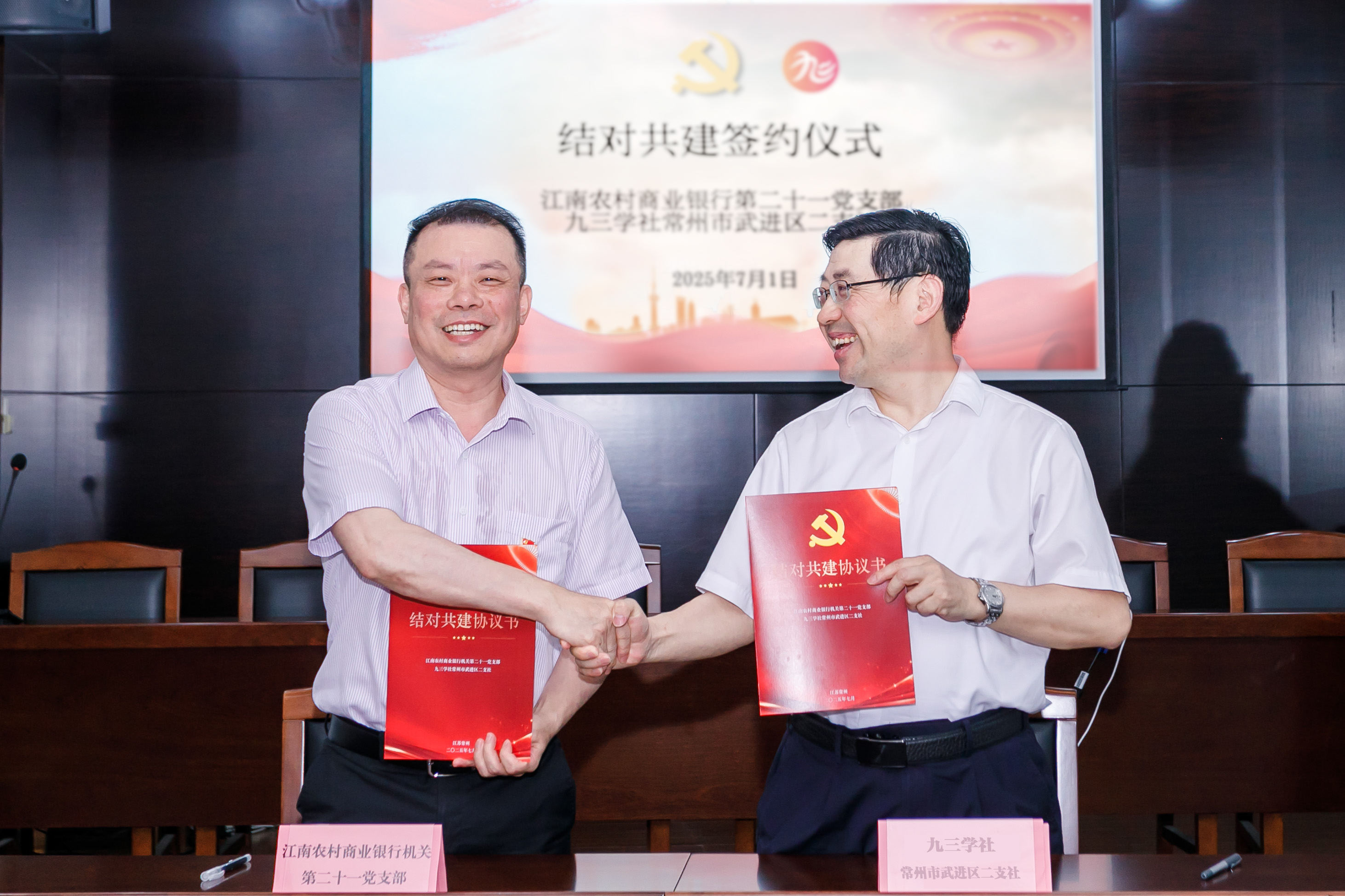 7月1日,在中國共產(chǎn)黨成立104周年之際,江南農(nóng)村商業(yè)銀行機(jī)關(guān)第二十一黨支部與武進(jìn)區(qū)同心助殘?bào)A站黨支部在武進(jìn)公益新天地會(huì)議室簽訂結(jié)對共建協(xié)議,就金融更好助力同心助殘公益達(dá)成諸多共識。