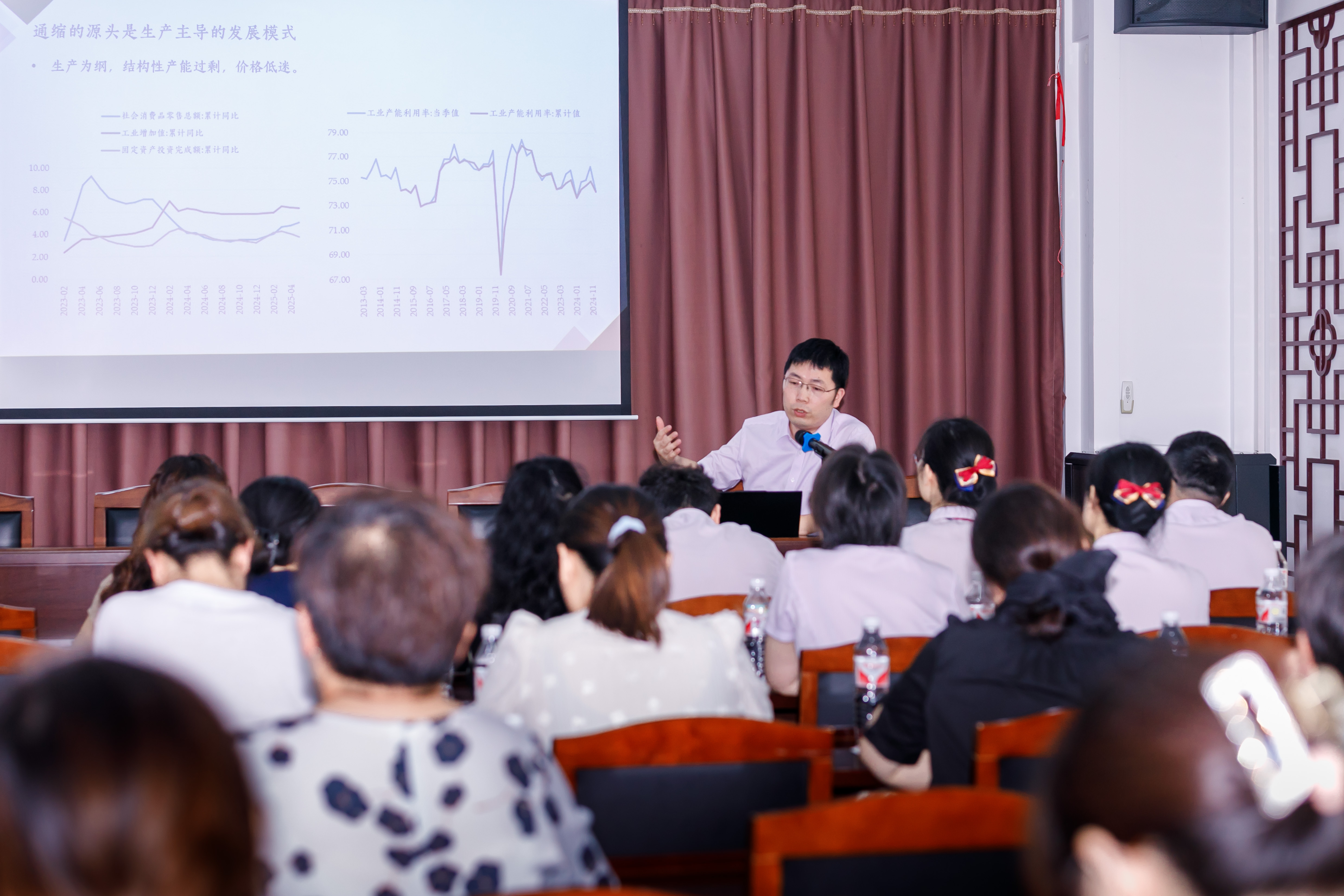 簽約儀式后,舉辦了《下半年經(jīng)濟(jì)形勢展望》報(bào)告會(huì),九三學(xué)社社員、上海交通大學(xué)博士后、江南農(nóng)村商業(yè)銀行金融市場部投資經(jīng)理盧亮亮利用數(shù)據(jù)量表深入分析上半年我國和主要經(jīng)濟(jì)體宏觀經(jīng)濟(jì)表現(xiàn)。盧亮亮對下半年宏觀經(jīng)濟(jì)形勢進(jìn)行了深入分析。他認(rèn)為,當(dāng)前中國經(jīng)濟(jì)面臨通縮壓力,根源在于生產(chǎn)主導(dǎo)的增長模式導(dǎo)致了產(chǎn)能過剩。在出口方面,中美關(guān)稅沖突凸顯了中國制造業(yè)崛起的挑戰(zhàn)與機(jī)遇。中國通過技術(shù)升級和供應(yīng)鏈重塑提升了出口競爭力,穩(wěn)固了全球供應(yīng)鏈地位。同時(shí),國內(nèi)增長的關(guān)鍵在于促內(nèi)需,需通過助力房地產(chǎn)去庫存、社會(huì)福利改革、生育補(bǔ)貼等措施提振消費(fèi)。下半年經(jīng)濟(jì)增長要盡力用中國方案去消除不確定性,穩(wěn)預(yù)期、去庫存、調(diào)結(jié)構(gòu),以改革贏得發(fā)展和穩(wěn)定。武進(jìn)區(qū)有關(guān)社會(huì)組織負(fù)責(zé)人,同心助殘?bào)A站部分愛心單位、志愿者和殘疾人代表、黨員干部和九三學(xué)社社員參加報(bào)告會(huì)。