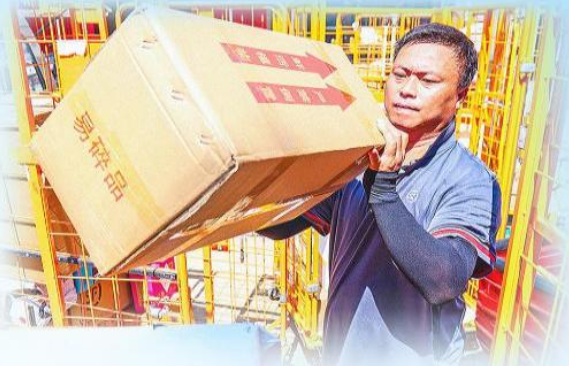 順豐速運(yùn)紫金城營(yíng)業(yè)點(diǎn)的快遞員正在整理快遞。徐晶瑋 攝