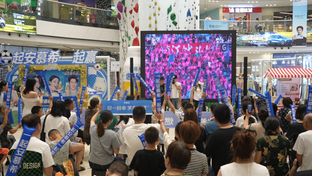 武進(jìn)吾悅廣場在一樓布置了觀賽區(qū)域,設(shè)置高清電子大屏,打造品質(zhì)觀賽體驗(yàn)。為充分抓住“蘇超”帶來的熱度,商場還推出應(yīng)援禮包、觀賽福利等蘇超球迷專屬權(quán)益。初步統(tǒng)計(jì),商場當(dāng)天客流量比平時(shí)增長10%,賽事對餐飲、購物等起到了一波拉動(dòng)效應(yīng)。