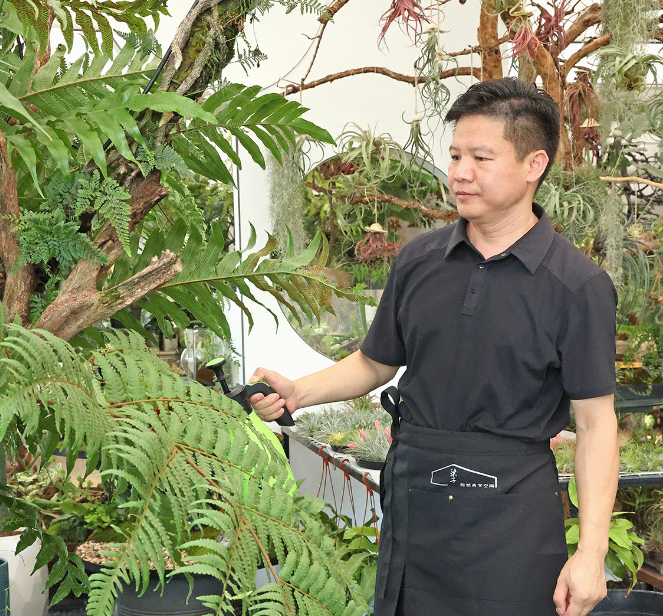 在這里,還有“花藝暑托班”,梁子手把手教孩子們栽種薄荷苗,傳遞“植物會記住觸摸的溫度”的理念。廊下懸掛的12種葉脈標本,成為他的“自然教科書”。而店內(nèi)日銷百件的“微縮苔庭”盆景,則讓都市人得以在案頭收藏一方山水。在夏溪花木市場的盎然綠意中,梁子正以枝葉為筆,持續(xù)書寫著自然與空間共生的新詩行。