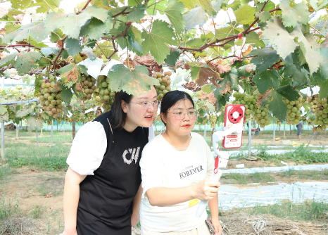 值得一提的是,本屆葡萄文化交流會還在常果園設(shè)置了分會場,直播達(dá)人和黨員志愿者組成“探園小隊”,沉浸式向直播間觀眾展示葡萄種植環(huán)境、采摘標(biāo)準(zhǔn)。常果園負(fù)責(zé)人潘曉峰告訴記者,基地種植了“陽光玫瑰”“妮娜皇后”等品種,盡管面積不大,但堅持深耕技術(shù),只為給消費(fèi)者帶來健康、安全的陽湖果品。“‘妮娜皇后’在種植技術(shù)上存在一定難度,需要配套噴滴灌系統(tǒng)、水肥一體化灌溉設(shè)施,以及反光膜鋪設(shè)等精細(xì)化操作,我們負(fù)責(zé)提供全套硬件設(shè)備,同時與專業(yè)院校建立技術(shù)合作,確保每個種植環(huán)節(jié)都有科學(xué)支撐。”