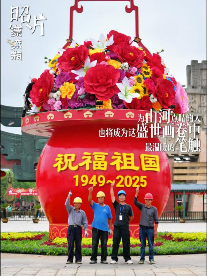 國(guó)慶前,花燈工人將絢爛的花朵,細(xì)心綴在巨大的骨架上。“城市就像這花籃,我們是那看不見的骨架。”正是這些精細(xì)的勞作與默默的奉獻(xiàn),共同托舉起城市的光鮮與璀璨。