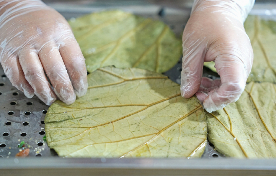 剛出鍋的重陽糕最為誘人。掀開鍋蓋,香味伴著蒸汽在屋內(nèi)彌漫開來,軟糯的米糕包裹著豐富的餡料,入口甜而不膩、層次分明,與若有似無的荷葉清氣交融,回味悠長。“等天氣再冷一點(diǎn),還會上新蘿卜絲、青菜等口味的糍團(tuán),讓傳統(tǒng)煙火氣彌漫四季。”韋夏英說。