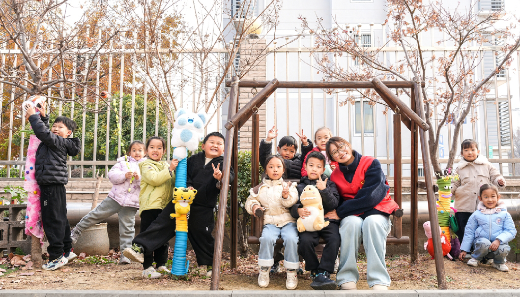 在武進(jìn)區(qū)劉海粟小學(xué)的校園里,二年級(jí)四班的孩子們?cè)诶蠋煄ьI(lǐng)下,化身“護(hù)樹(shù)小衛(wèi)士”。他們拿出心愛(ài)的毛絨玩偶,再配上親手繪制、寫(xiě)滿祝福的卡紙,為朝夕相處的樹(shù)木朋友們精心“打扮”。校園變成了充滿童趣的露天藝術(shù)展,孩子們的笑聲與創(chuàng)意,讓冬日的校園生機(jī)盎然。