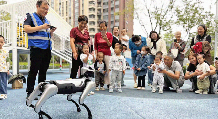 星河社區(qū)居民與機(jī)器狗互動