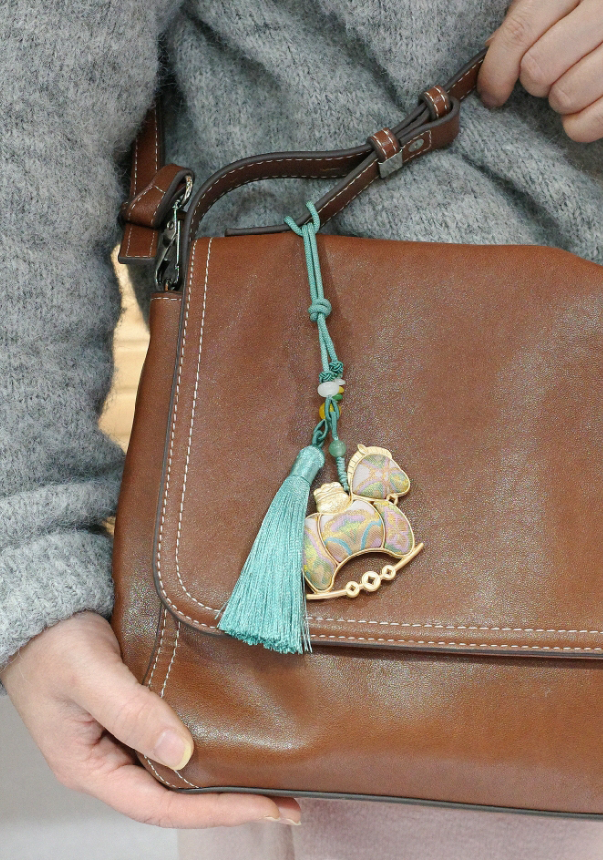 宋錦與云錦、蜀錦并稱“三大名錦”,從宋代傳承至今,織造工序繁復(fù),素有“寸錦寸金”之稱。恰逢馬年將至,寓意“馬上成功”的錦緞小馬掛件成為全場“最熱單品”。小馬取意唐代鞍馬藝術(shù),造型圓潤肥美。