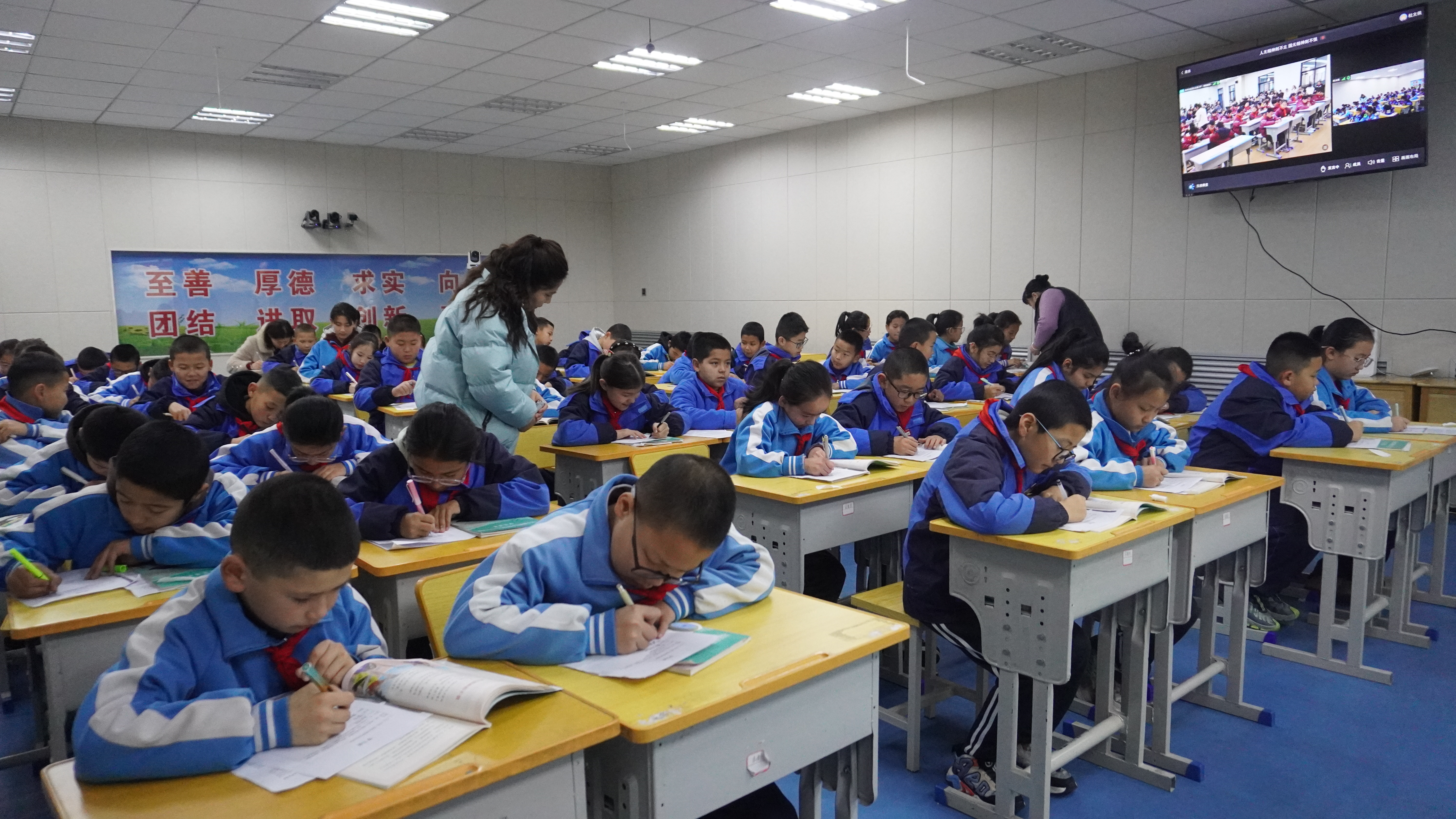 課堂伊始,女排拼搏奪冠的視頻很快將采菱小學(xué)五(6)班和尼勒克縣武進(jìn)實(shí)驗(yàn)學(xué)校五(5)班的學(xué)生們帶入了充滿(mǎn)激情與活動(dòng)的學(xué)習(xí)氛圍中。此次“云課堂”以“人無(wú)精神則不立,國(guó)無(wú)精神則不強(qiáng)”為學(xué)習(xí)主題,借助遠(yuǎn)程互動(dòng)課堂平臺(tái),師生們打破地域限制,就個(gè)人、社會(huì)、國(guó)家需要什么樣的精神等問(wèn)題進(jìn)行實(shí)時(shí)互動(dòng)交流,讓大家更深刻認(rèn)識(shí)到社會(huì)主義核心價(jià)值觀在不同地域文化中的豐富表現(xiàn)形式。來(lái)自新疆尼勒克縣武進(jìn)實(shí)驗(yàn)學(xué)校五年級(jí)的學(xué)生蒙卡·薩茹樂(lè)激動(dòng)地說(shuō)道,“我和常州的小朋友一起上這節(jié)道法課,他們的熱情打動(dòng)了我,我覺(jué)得這節(jié)課真是有趣極了。”這堂同步課堂如同一場(chǎng)文化盛宴,為彼此打開(kāi)了一扇了解多元文化的窗口。