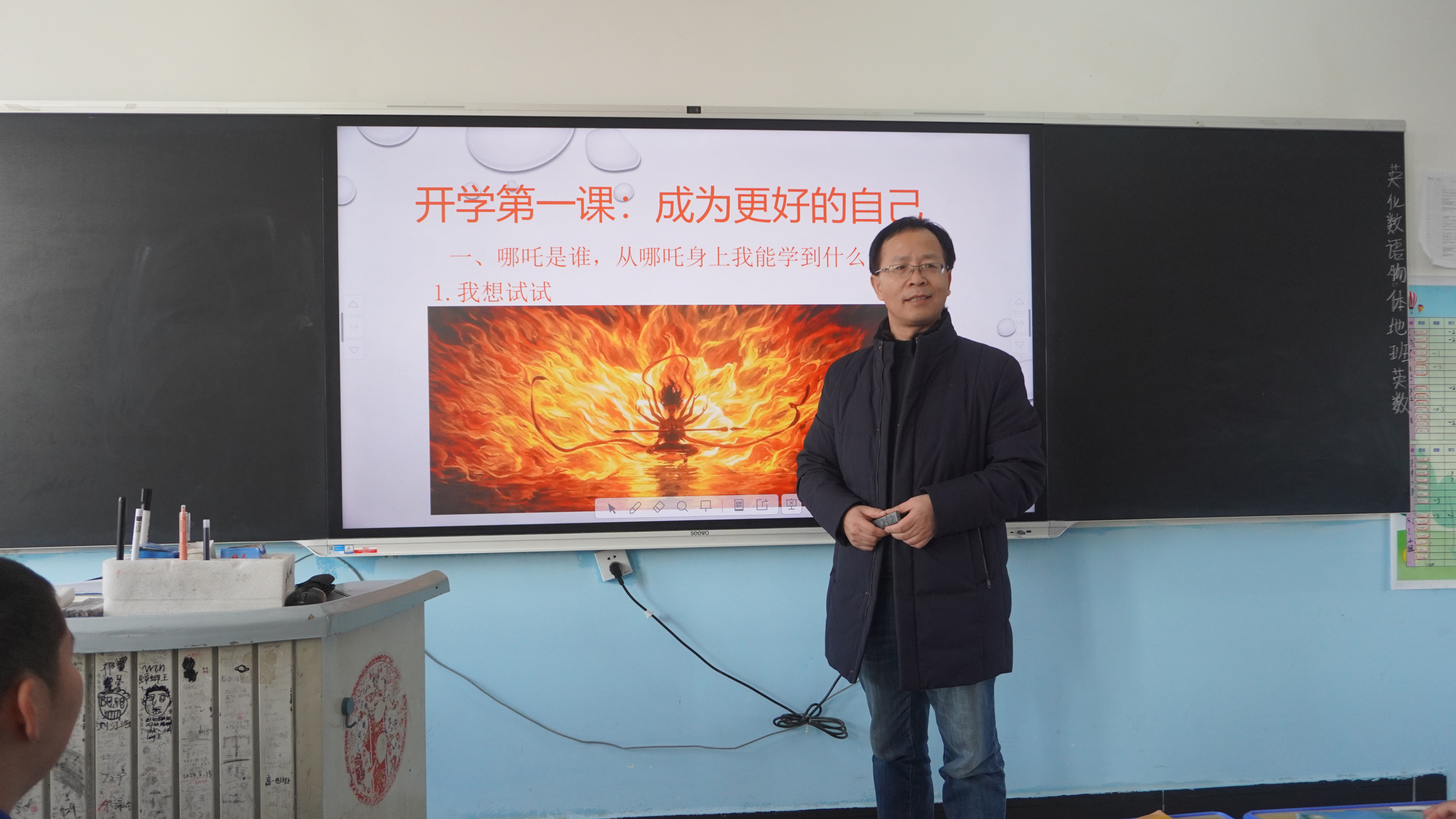 隔壁班的援疆老師陳飛同樣也是借用《哪吒2》的“魔力”打開(kāi)了同學(xué)們的話(huà)匣子,電影中勵(lì)志的話(huà)語(yǔ)為同學(xué)們的新學(xué)期注入了滿(mǎn)滿(mǎn)的力量。“我們會(huì)像陳老師說(shuō)的那樣,用哪吒的精神去挑戰(zhàn)數(shù)學(xué),挑戰(zhàn)自己,克服學(xué)習(xí)中的各種困難。”尼勒克武進(jìn)高級(jí)高中學(xué)生帕孜拉提·阿不力克信心滿(mǎn)滿(mǎn)。