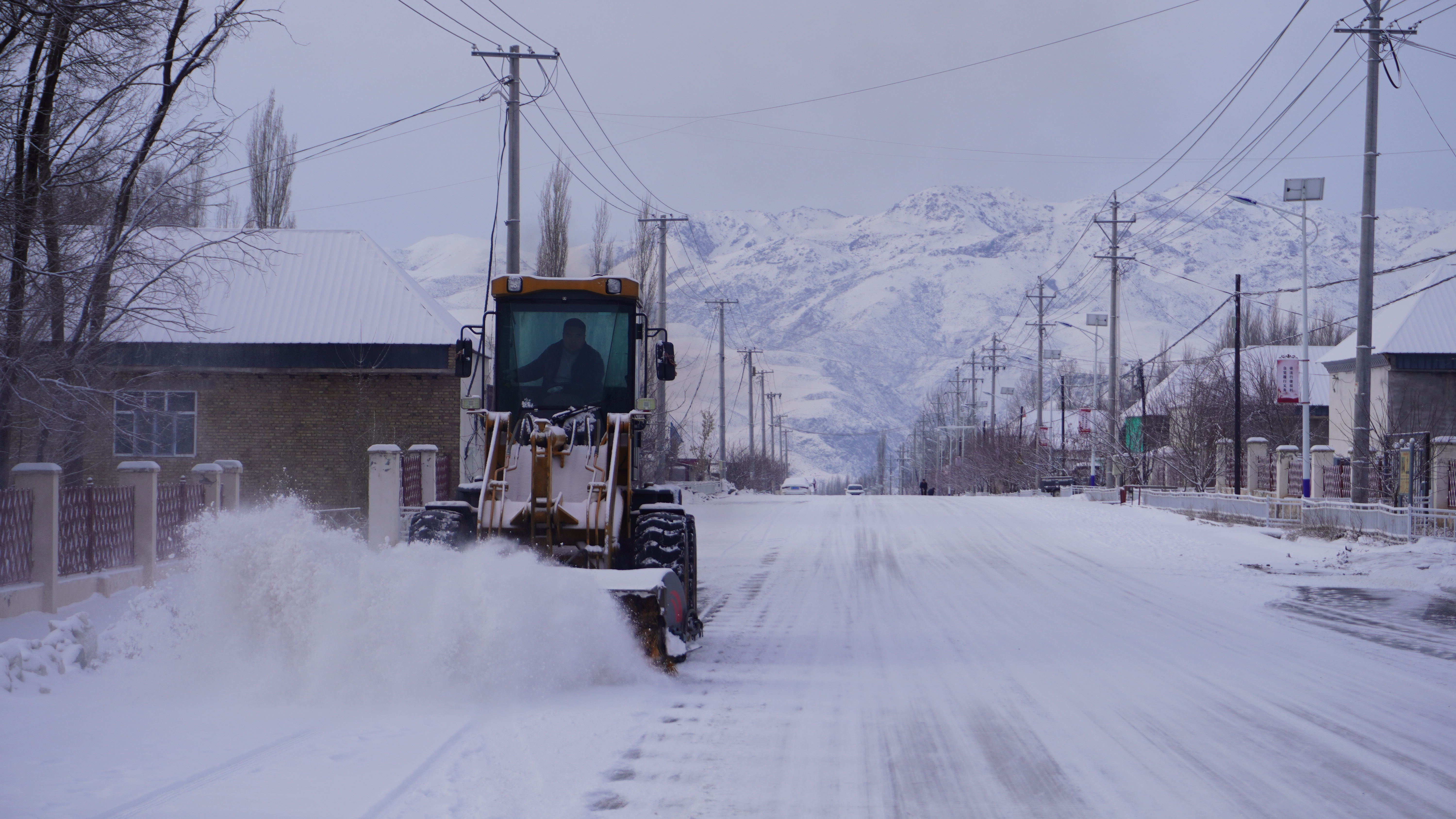 連日來的幾場(chǎng)大雪,讓尼勒克重新裹上銀裝,一夜風(fēng)雪過后,道路上的積雪又堆積起來。不過掃雪車只需幾個(gè)來回,大喀拉蘇村這條寬闊的主干道立馬現(xiàn)出了“真身”。阿老·加爾肯介紹,這條道路不僅承擔(dān)附近百姓的出行往來,更是喀拉蘇鄉(xiāng)巴扎(集市)的聚集地, “多虧援疆的武進(jìn)工作組幫扶,花了5000多才換了這個(gè)掃雪車的刷頭,之前已經(jīng)完全壞掉了,掃都掃不干凈,老百姓一不小心就會(huì)滑倒。”阿老·加爾肯說。