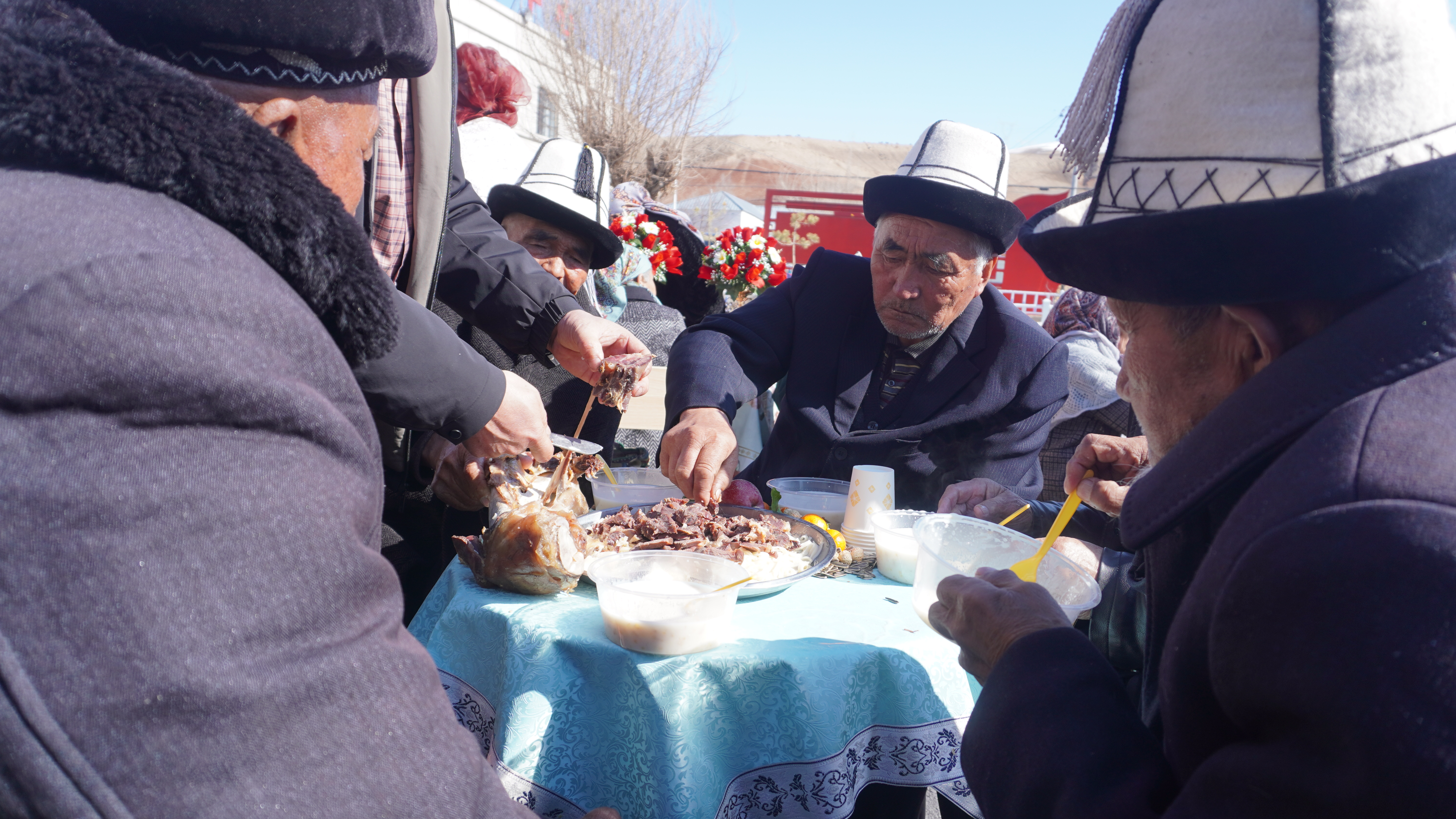 活動當天,婦女們穿上精致的衣裙,男人們戴上潔白的氈帽,羊肉、葡萄干、青稞等食材制成的“闊缺飯”陣陣飄香,熱氣騰騰的納吾熱孜粥被一碗碗送到人們面前。據悉,納吾熱孜粥是由水、大米、小米、鹽、肉、面、奶疙瘩等七種原料組成,象征著幸福、成功、智慧、健康、財富、成長和上天的庇護,預示著來年生活富足,萬事順意。在美妙的樂器彈唱中,人們歡快起舞,互相祝福,共同祈愿新的一年五谷豐登、牛羊肥壯。