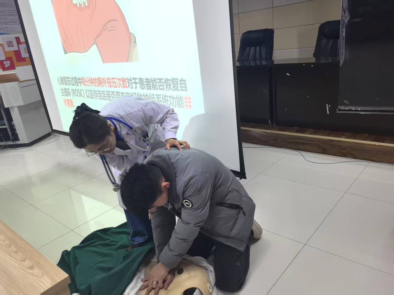 培訓(xùn)分為理論講解和實(shí)操演練兩部分,通過(guò)PPT圖文演示和通俗易懂的語(yǔ)言,沈丹丹向居民講解了常見老年危重疾病的特點(diǎn)及應(yīng)對(duì)方案、心肺復(fù)蘇的操作步驟以及注意事項(xiàng)。在隨后的實(shí)操環(huán)節(jié),醫(yī)護(hù)人員利用人體模型進(jìn)行了現(xiàn)場(chǎng)示范,并指導(dǎo)居民進(jìn)行實(shí)操練習(xí),在醫(yī)護(hù)人員的耐心指導(dǎo)下,大家認(rèn)真練習(xí)每一個(gè)動(dòng)作,確保掌握正確的操作技巧。