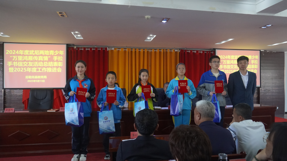 日前,2024年度武尼兩地青少年“萬(wàn)里鴻雁傳真情”手拉手書(shū)信交友活動(dòng)總結(jié)表彰暨2025年度工作推進(jìn)會(huì)在尼勒克縣召開(kāi),裴莉蓉、李雅軒等7名同學(xué)獲得表彰,極大地提升了武尼兩地師生持續(xù)互動(dòng)互促、交往交流交融的熱情。
