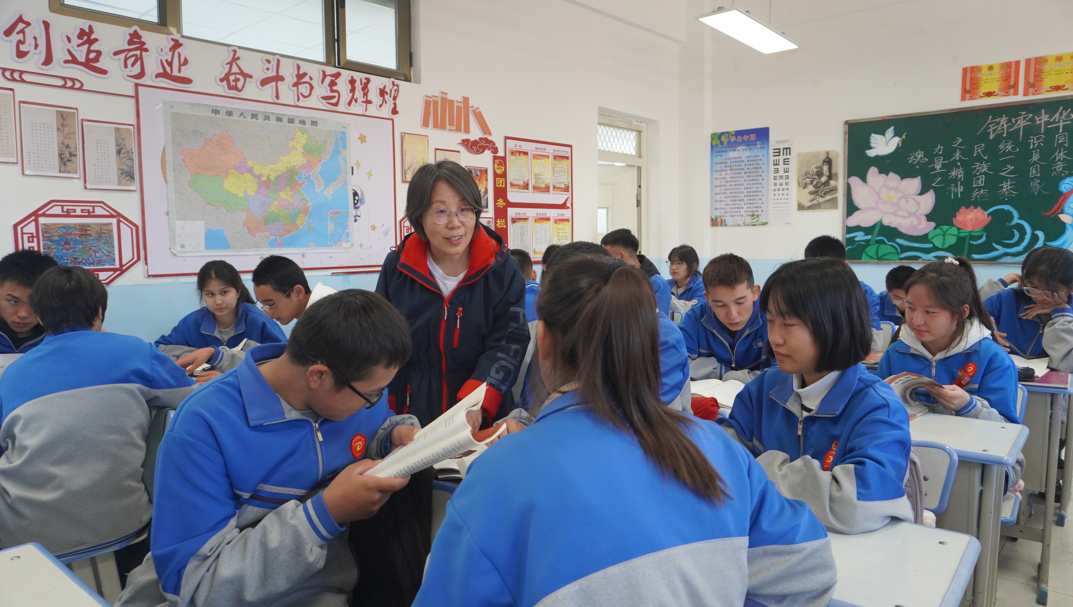 清晨的尼勒克縣第一中學(xué)高二(21)班,丁瑛正在聲情并茂地講解李白的《將進(jìn)酒》。她在教學(xué)設(shè)計(jì)中創(chuàng)新融入李白與西域的歷史淵源,引導(dǎo)學(xué)生深入理解中華文明多元一體的格局。“讓學(xué)生真正理解文化的包容與博大,是語文教學(xué)的重要使命。”丁瑛在課后如是說。
