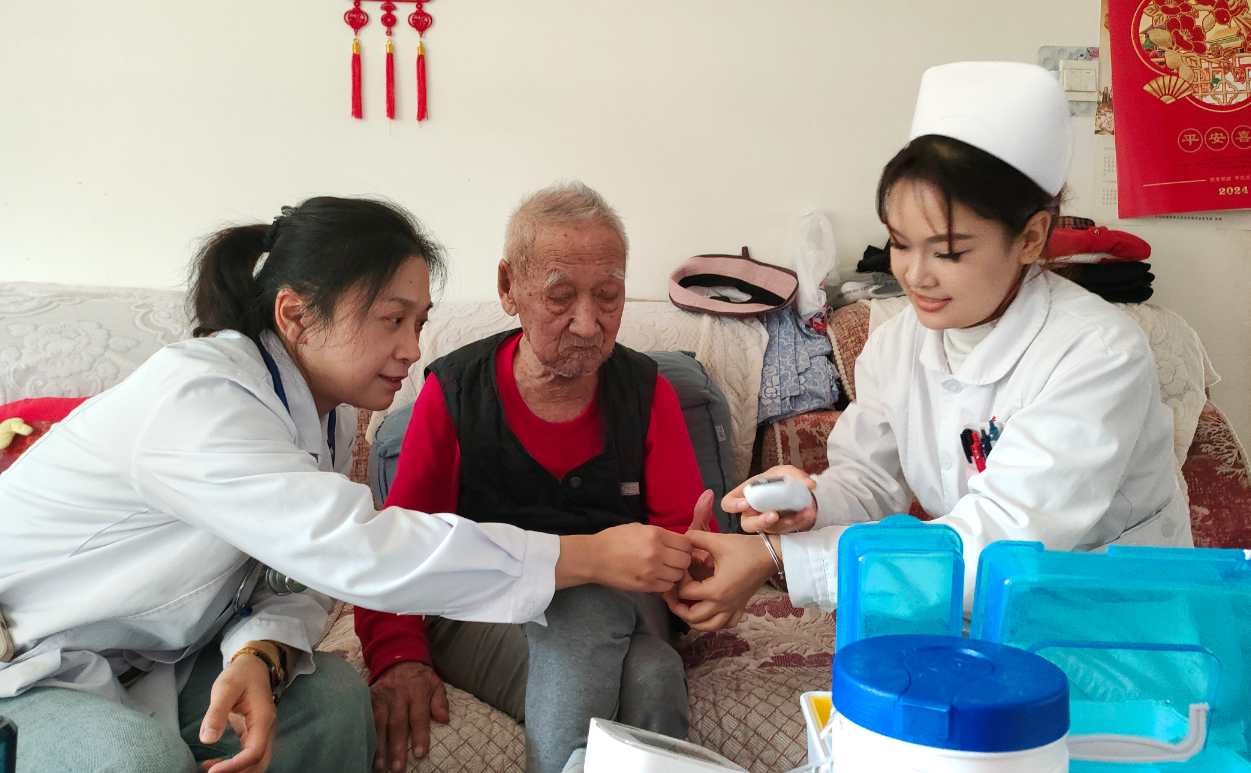 推開王樹芝家的門,時光仿佛在這一刻靜止。老人雖已滿頭銀發(fā)、步履蹣跚,但胸前的軍功章依舊熠熠生輝,無聲訴說著那段烽火連天的歲月。醫(yī)護人員輕扶老人坐下,熟練地打開便攜設(shè)備,為他測量血壓、血糖和心率。“您平時要注意保暖,飲食清淡些,家里也可以適當(dāng)走動……”醫(yī)生結(jié)合檢測結(jié)果,耐心叮囑用藥細節(jié),并針對冬季保健、居家活動等提出個性化建議。