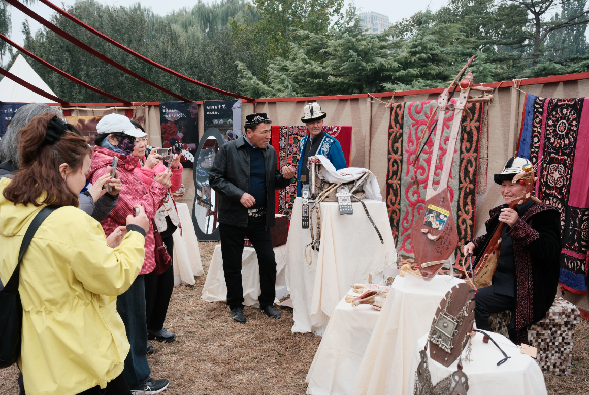 技藝展演區(qū)同樣人氣高漲。氈繡能手巴合夏古麗·胡安手指翻飛間,彩色羊毛線在氈布上綻放出傳統(tǒng)紋樣;手工馬具制作師吾太·別格吐?tīng)栠d演示著如何將牛皮編織成既堅(jiān)固又精美的馬鞍,不時(shí)與好奇的市民交流制作心得。這些承載著游牧民族智慧的技藝,不再是博物館櫥窗里的靜態(tài)陳列,而是變成了可觸可感的鮮活存在。