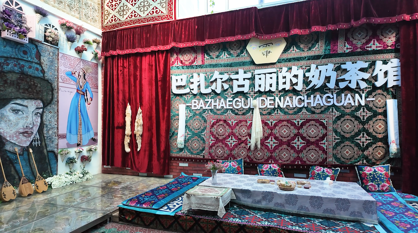 兩年前,同樣的這個(gè)院子,卻是另一番景象。那時(shí)的多爾布津村是尼勒克縣出了名的“三多一少”后進(jìn)村——人多、事多、矛盾多、生產(chǎn)資料少。巴扎爾古麗的奶茶店也只是個(gè)設(shè)施簡(jiǎn)陋、鮮有顧客的普通農(nóng)家樂(lè)。