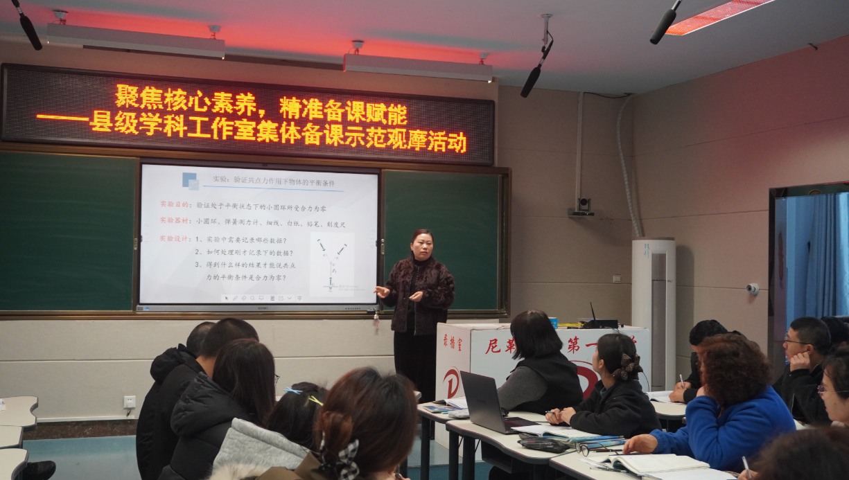 近日,尼勒克縣高中物理集體備課觀摩活動(dòng)舉行,來自江蘇援伊·常州(武進(jìn))工作組的援疆教師薛燕飛,從學(xué)情分析出發(fā),系統(tǒng)闡述了《共點(diǎn)力的平衡》《牛頓第一定律》《實(shí)驗(yàn):探究加速度和力、質(zhì)量的關(guān)系》三個(gè)核心課題的教學(xué)設(shè)計(jì)與實(shí)施策略,為全縣物理教師提供了生動(dòng)的教學(xué)范例。