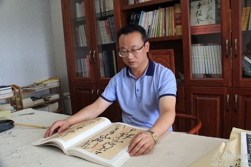 生在這樣靈氣十足的土壤,陳燕青在村小——洋澤小學(xué)讀書那會(huì),就向往弄墨調(diào)朱。六年級(jí)時(shí)他跟著語(yǔ)文老師陳國(guó)梁學(xué)了一段時(shí)間書法。“村小老師只讓我照著字帖自己練,并不能教什么筆法。”陳燕青說(shuō)自己也算不得入了門,但對(duì)于書法的濃厚興趣,深埋少年心中。
