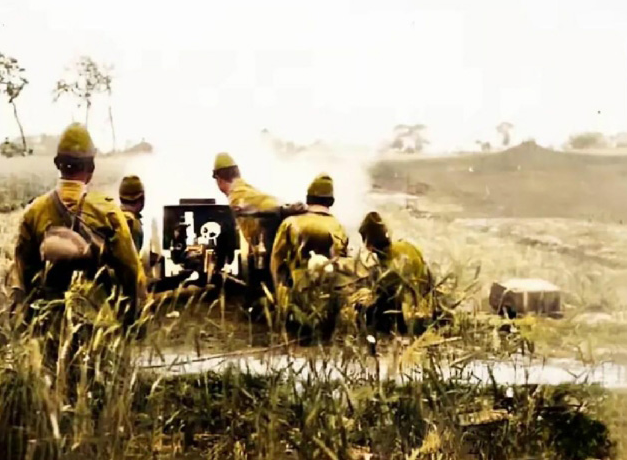 ▲奔牛鎮(zhèn)附近的日軍,用迫擊炮瘋狂開火,曠野上彌漫著滾滾濃煙。