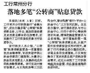 工行常州分行落地多筆“公轉(zhuǎn)商”貼息貸款