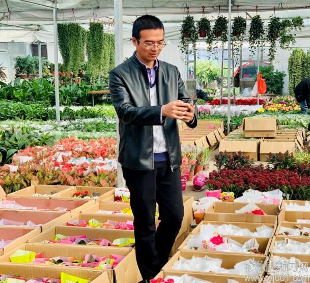 走進馬克園藝,呈現(xiàn)在眼前的是一片花的海洋。蝴蝶蘭、長壽花、繡球等300多種盆景近20萬盆,五彩繽紛,讓人眼花繚亂。馬也平告訴記者,如今,他請了專業(yè)的直播團隊,每天早上9點開始,在門店直播到凌晨1點。“大家以前都在淘寶上看圖片買綠植,見不到實物,心里總是沒那么放心。我們選擇在門店直播,就是為了讓客戶看到最真實的花、葉子、根部、花苞。”馬也平笑著說,直播效果出奇好,最高峰時有超100萬人同時觀看,一場直播下來,累計點贊數(shù)突破了1100萬。