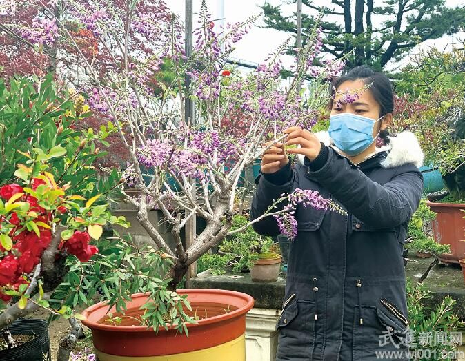 門店不大,走進(jìn)其中卻別有一番天地。萼綠花白、小枝青綠的金錢綠萼梅,默默在枝頭盛放;紅須朱砂梅層層疏疊,花有甜香,濃紫色的花瓣惹人喜愛;枝葉茂密的金絲吊蝴蝶,每條線上垂吊著狀如蝴蝶的紅色果實(shí),微風(fēng)吹過,就像群蝶飛舞,甚是壯觀……在這里,宛若進(jìn)入了一座“新奇花木園”。“我們只做應(yīng)季盆栽中的精品,園子里品種不多,但都是從天南海北精挑細(xì)選而來。”劉穎告訴記者,為了尋找新鮮高端的貨源,她經(jīng)常會(huì)赴全國各地參加花木展,增長見識,引進(jìn)心儀品種。